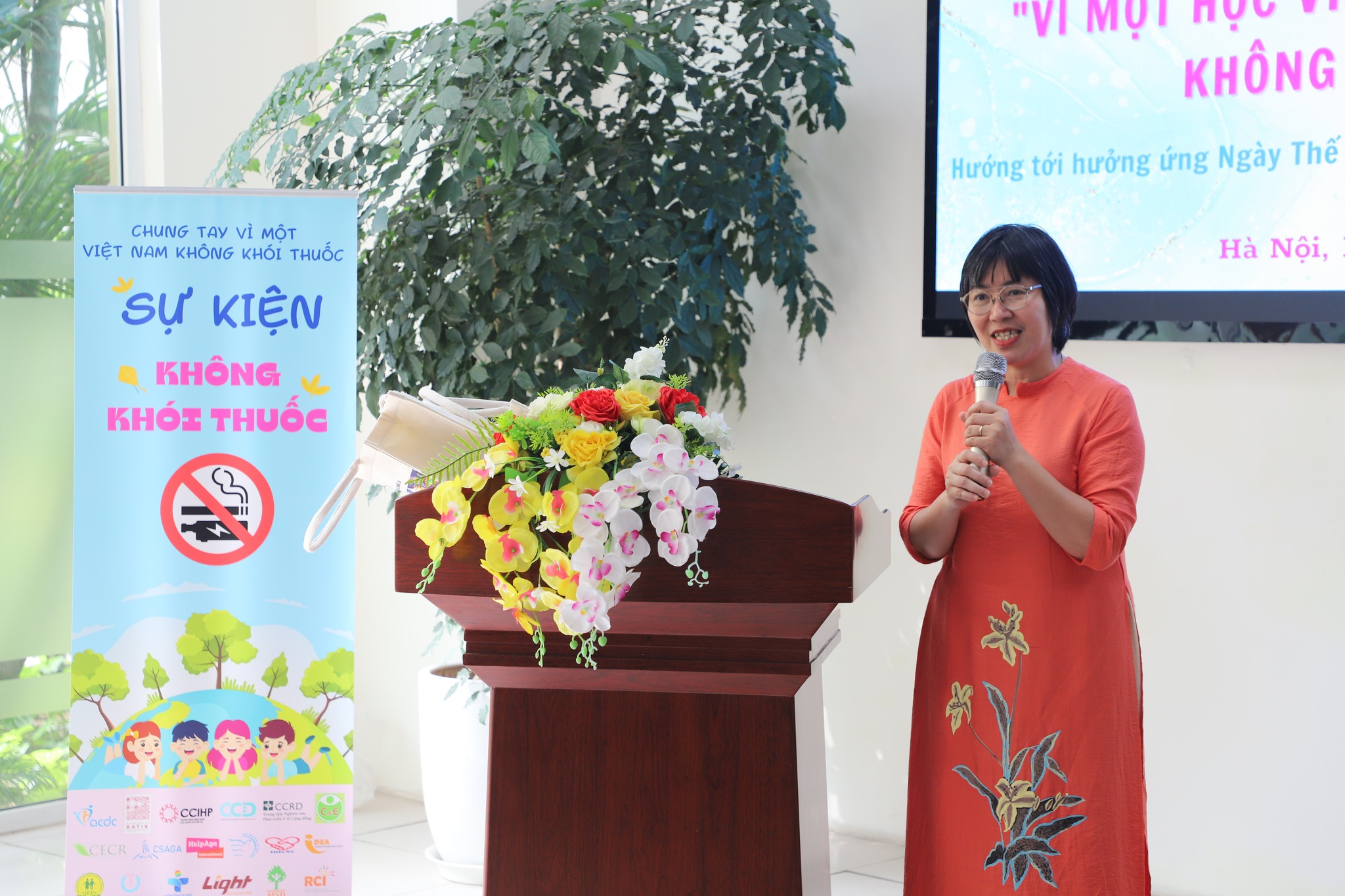 để lại nhiều cảm xúc sâu lắng. Bà nhấn mạnh: “Tác hại của thuốc lá không chỉ dừng lại ở người hút mà còn ảnh hưởng đến tất cả những người xung quanh. Khói thuốc – dù là truyền thống hay điện tử – đều mang đến những hệ lụy nghiêm trọng đối với sức khỏe, đặc biệt là đối với phụ nữ và trẻ em. Và môi trường giáo dục – nơi nuôi dưỡng tương lai – không thể là nơi dung dưỡng khói thuốc. Để có một môi trường không khói thuốc, không thể chỉ chờ đợi vào các quy định. Chúng ta cần sự chung tay, từ những việc nhỏ nhất: nói không với thuốc lá, khuyên bạn bè đừng hút, tạo ra những không gian xanh, sạch và an toàn. Mỗi người là một ‘tác nhân thay đổi’, và khi chúng ta hành động cùng nhau, xã hội sẽ tốt đẹp hơn.”