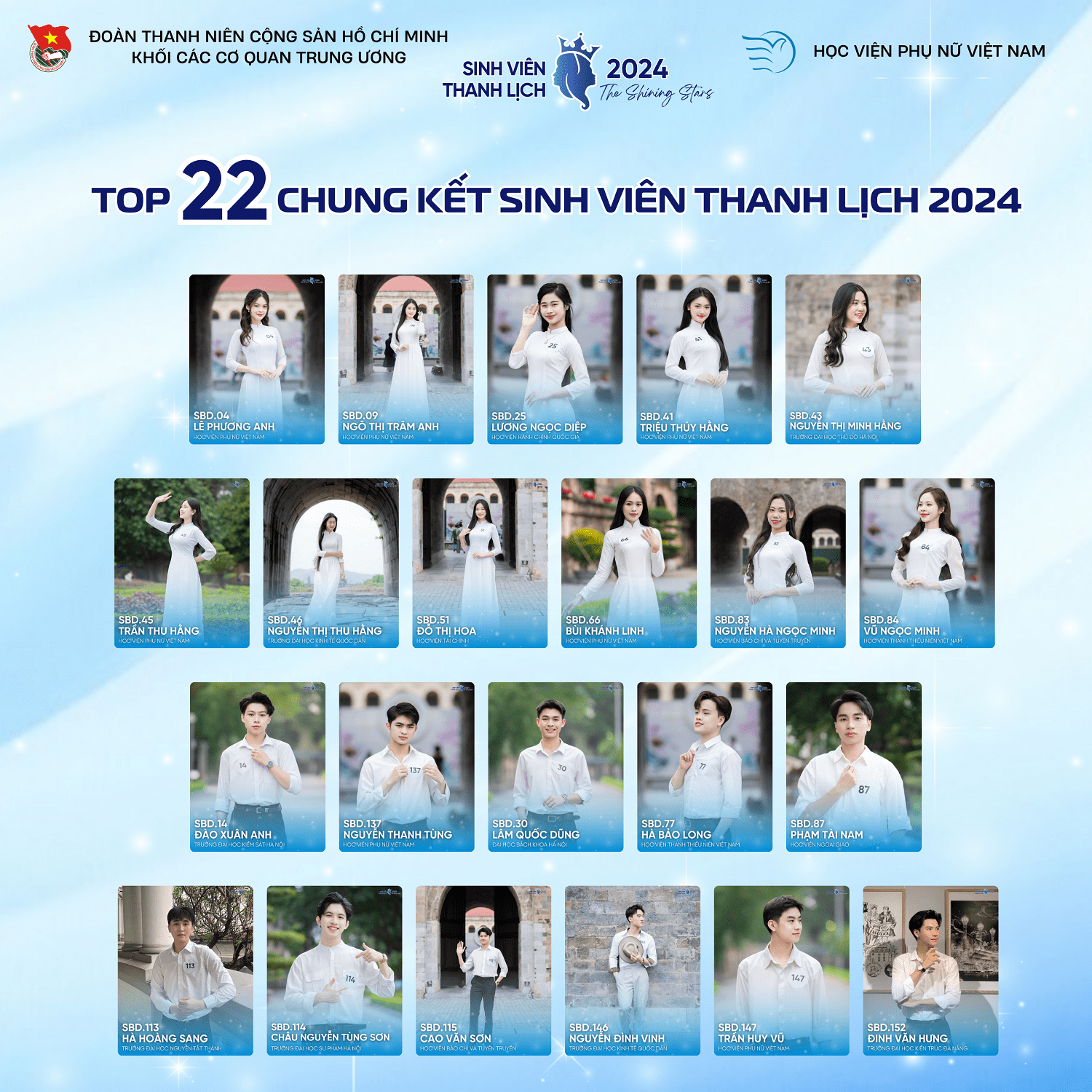 Tiếp nối thành công của mùa giải 2022, cuộc thi Sinh viên thanh lịch 2024 do Học viện Phụ nữ Việt Nam phối hợp với Đoàn Khối các cơ quan Trung ương tổ chức đánh dấu sự phát triển vượt bậc về quy mô và chất lượng. Với hơn 200 thí sinh từ khắp mọi miền đất nước tham gia từ vòng loại hồ sơ, cuộc thi đã tuyển chọn được 22 gương mặt xuất sắc nhất sau những vòng thi cạnh tranh gay cấn. Những thí sinh này không chỉ thể hiện vẻ đẹp ngoại hình mà còn khẳng định bản lĩnh, trí tuệ và tài năng trong nhiều lĩnh vực.