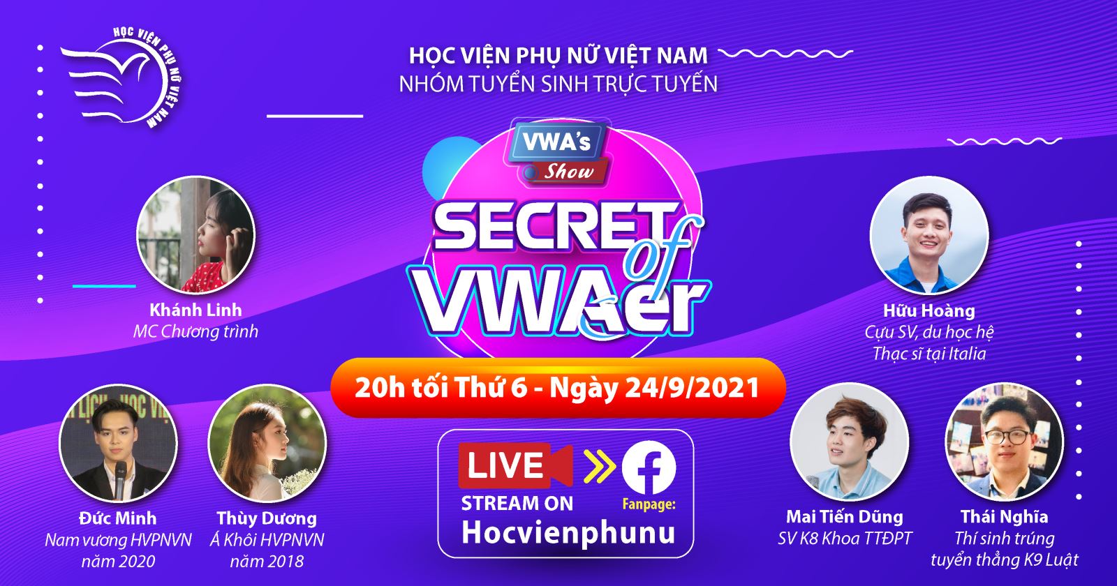 Chương trình SECRET OF VWAer (Bí mật của SV VWA) thuộc chuỗi các chương trình VWA’s Show, do nhóm tuyển sinh trực tuyến thực hiện. VWA’s SHOW được coi là sân chơi, điểm hẹn kết nối, giao lưu của các thế hệ sinh viên Học viện.