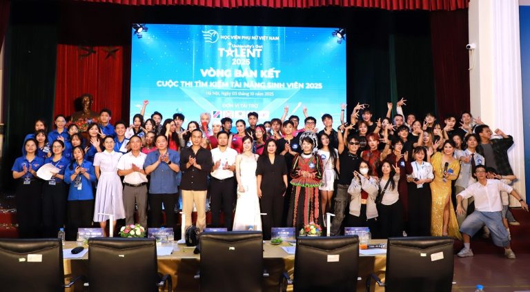 Tối 2/10/2025, hội trường Học viện Phụ nữ Việt Nam như bừng sáng bởi ánh đèn sân khấu và sự cổ vũ nồng nhiệt trong vòng Bán kết cuộc thi “Tìm kiếm tài năng sinh viên – University’s Got Talent 2025”. Top 30 thí sinh xuất sắc đến từ 20 trường trên cả nước đã cùng nhau tạo nên một đêm hội nghệ thuật đa sắc màu, đầy cảm xúc và sáng tạo.