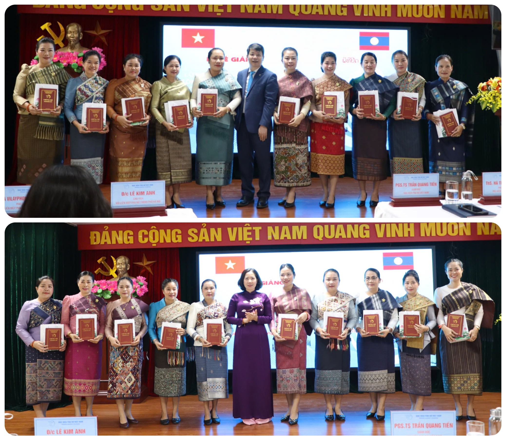 Speaking at the closing ceremony of the course, Assoc.Prof. Dr. TRAN Quang Tien gave thanks to the attention and direction of the Central Committee of VWU and the coordination of Hanoi Women’s Union in organizing the class, welcomed the spirit of learners in overcoming all difficulties in language, living conditions, and weather to study and achieve good results. At the same time, he hoped that the students would continue to study the documents, flexibly and creatively apply knowledge in their work when returning home to contribute and better serve Lao Women’s Union (LWU) in particular and the Lao People’s Democratic Republic in general. Comrade TRAN Quang Tien hoped for close coordination, creating better conditions between the Governments and ministries of the two countries to be able to organize the next courses with more effective activities, and also hoped that the students would be a bridge for the relationship between the WU of the two countries and the steadfast love between Vietnam and Laos. Finally, on behalf of the staff and lecturers of the Academy, Assoc.Prof. Dr. TRAN Quang Tien wished the delegation a safe journey back home and wished the learners more and more success in their work and life.