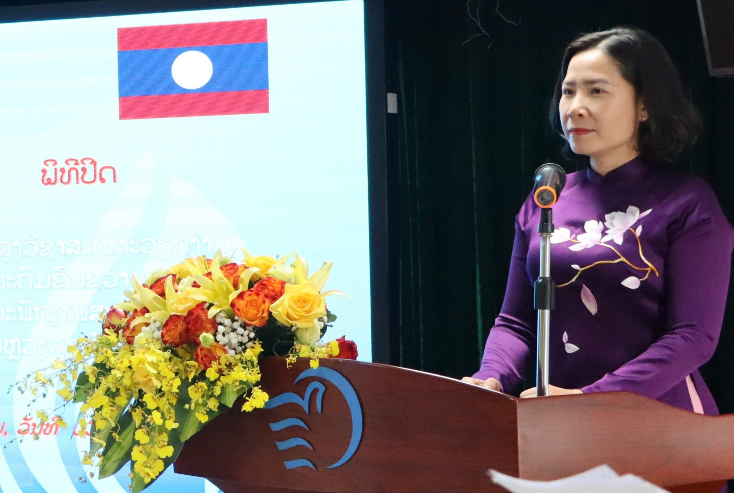 Representing 20 learners of Lao Women’s Union Cadre training course, Ms. Vylayphone KEOPHOSAY – Vice President of Women’s Union of Vientiane Capital, Lao PDR, expressed her pride and excitement when receiving the certificate of completion of the training course, gave thanks to the leaders of Vietnam and Laos, ministries and branches, especially VWU and VWA for creating favorable conditions. During the course of study, the students focused on acquiring valuable knowledge and experience imparted by the lecturers, and committed to applying the knowledge, experience in women’s work and leadership skills they had learned to work at ministries and branches depending on the actual situation. At the same time, she hoped that VWU and VWA would continue to open more training courses for Lao women cadres in the future on a larger scale, wishing the Vietnam – Laos solidarity to be increasingly strong.