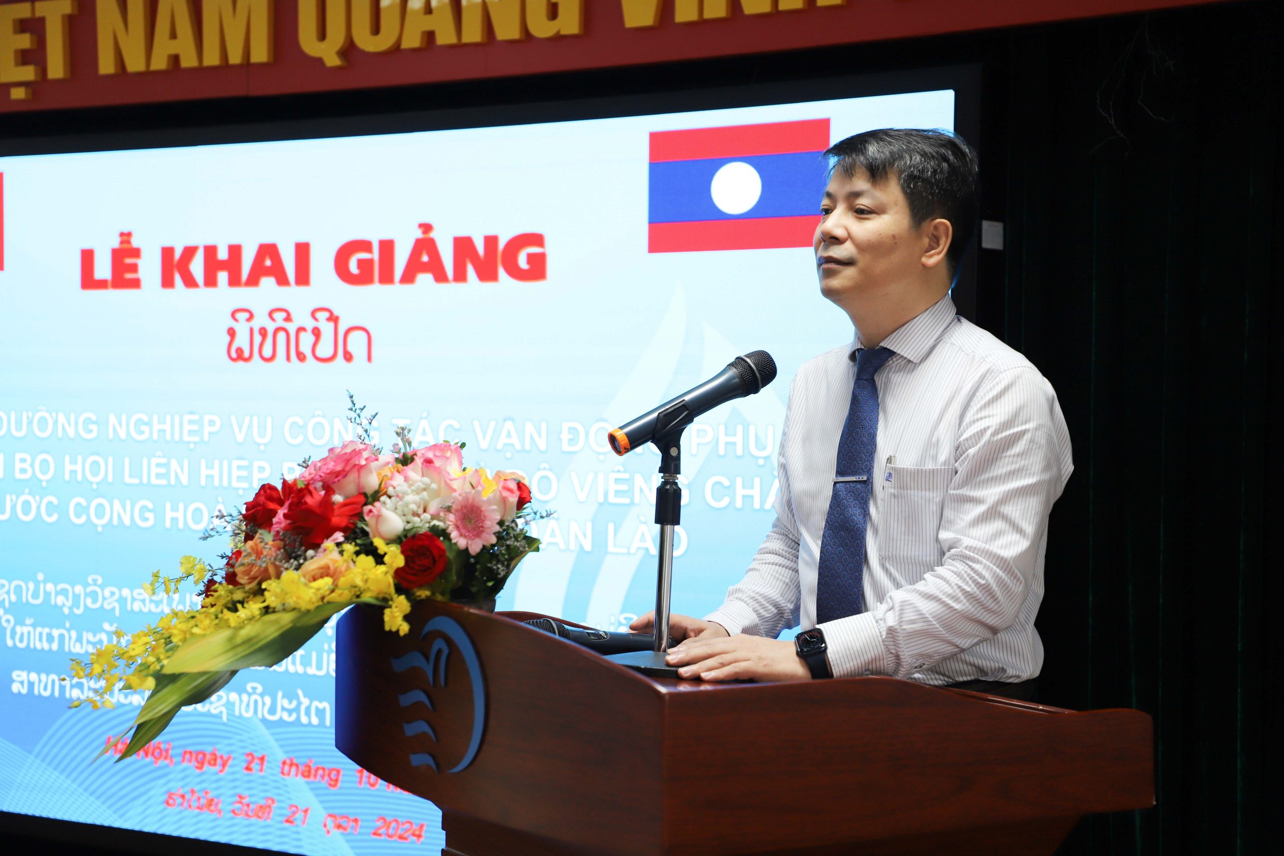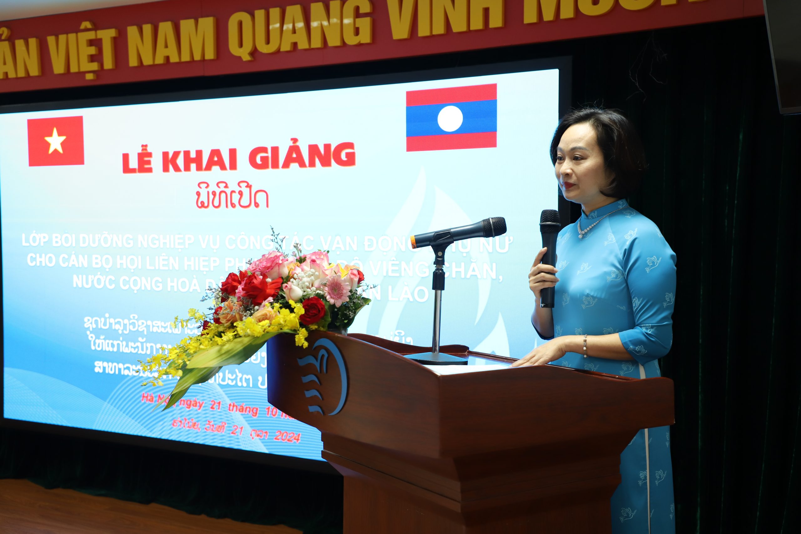 In her welcoming speech to the trainees, Comrade PHAM Thi Thanh Huong, Member of the Central Executive Committee of VWA, Permanent Vice President of Hanoi Women’s Union affirmed the steadfast friendship between Vietnam and Laos. She expressed her gratitude to the Party and State of Vietnam and Laos for always paying attention to promoting gender equality and supporting women’s development. Comrade PHAM Thi Thanh Huong also thanked the Academy for always enthusiastically and responsibly coordinating with Hanoi Women’s Union to successfully organize training courses for Lao women cadres. She pledged to closely coordinate in the process of organizing the class and wished the course a great success, contributing to strengthening the close neighborly relationship between Vietnam and Laos, forever green and sustainable.