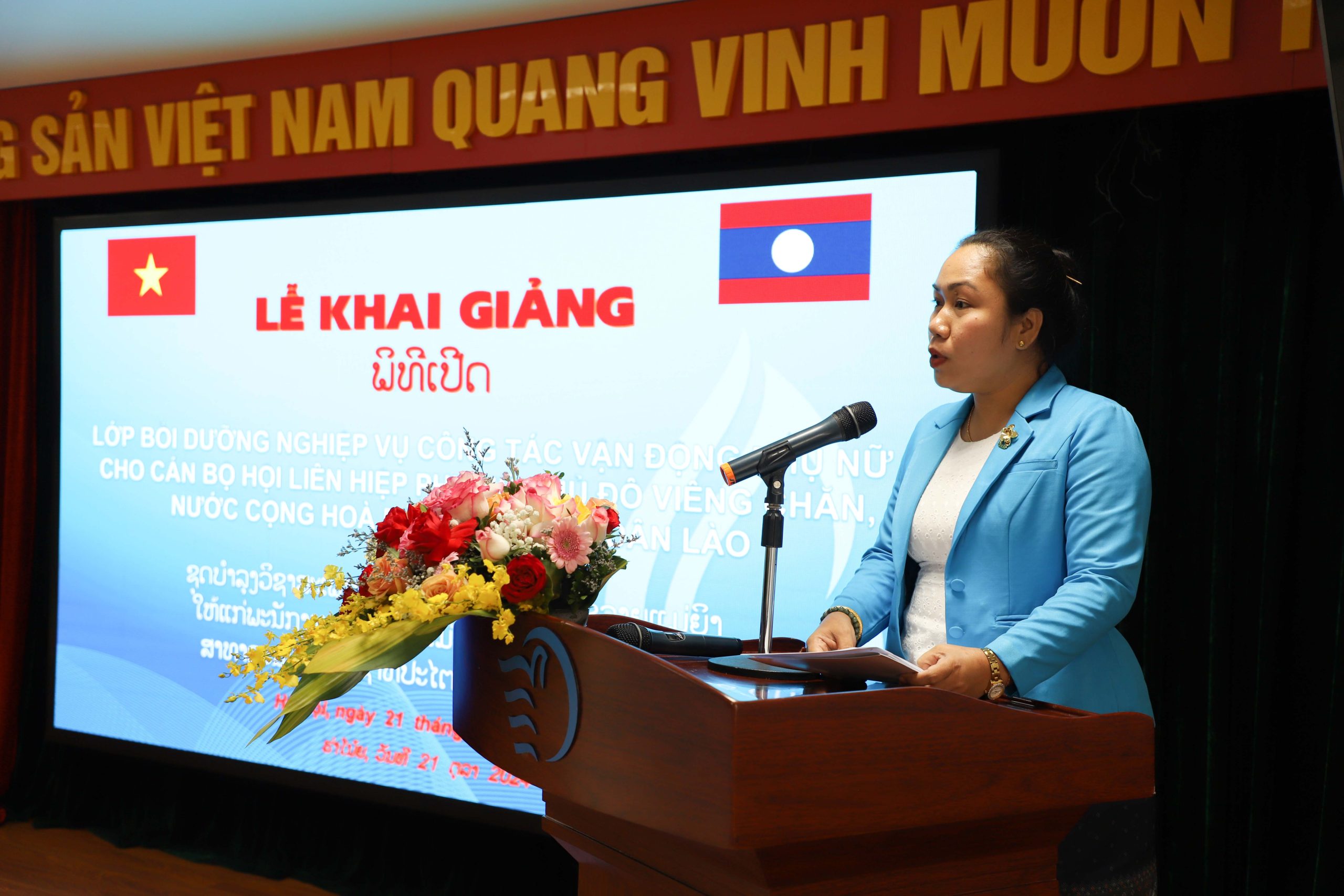 Representing 20 learners of the Lao Women’s Cadre Training Course, Comrade Vilayphone KEOPHOXAY – Vice President of Vientiane Capital Women’s Union gave a speech. She sincerely thanked the Government, Ministries, departments and branches, especially VWU and the Lao Women’s Union for creating conditions for the learners of the training course to come to the beautiful country of Vietnam to improve their knowledge. She affirmed that the whole group will try to study not only to accumulate knowledge and experience but also to respond to the precious feelings that the people and country of Vietnam have offered the Lao people.