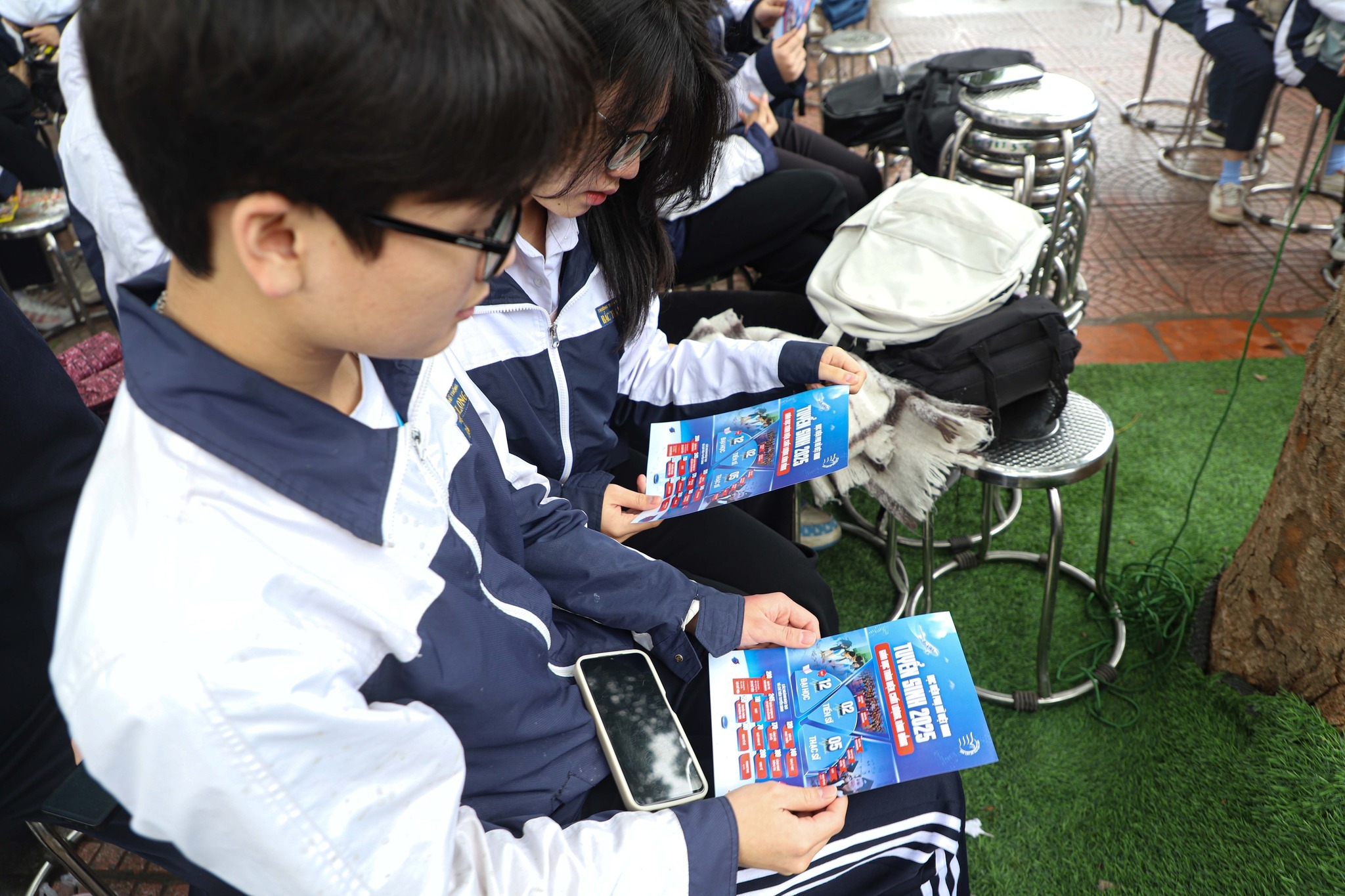 Students of Bac Thang Long High School refer to the 2025 enrollment information of the Vietnam Women’s Academy