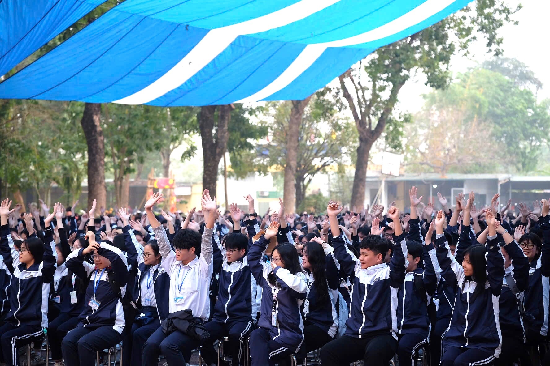 The program attracted the participation of 2,047 students and teachers of the high school. In particular, the program had the presence of Mr. NGUYEN Quoc Tan – Vice Principal in charge of the school, Ms. NGUYEN Thi Nhu Tuoi – Vice Principal of the school, and all other teachers.