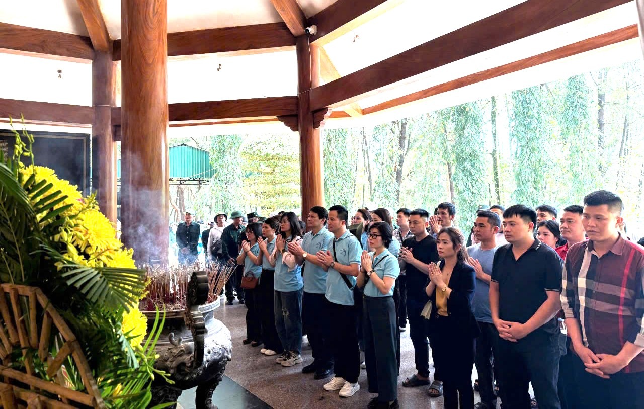 Tại Nhà tưởng niệm Liệt sĩ Thanh niên xung phong toàn quốc, nơi có tấm bia ghi danh gần 4.000 anh hùng liệt sĩ, đoàn đã thành kính dâng hương, tưởng nhớ những người con ưu tú đã hy sinh vì độc lập, tự do của Tổ quốc. Hương thơm lan tỏa, từng bông cúc trắng được cài lên phần mộ mười nữ liệt sĩ như một lời tri ân, một sự kết nối lặng lẽ giữa quá khứ và hiện tại.