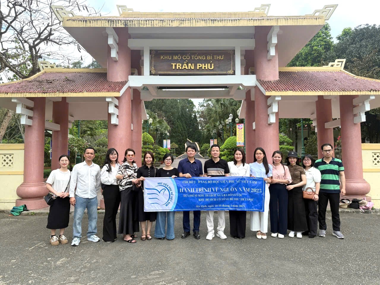 Tiếp nối hành trình, đoàn về xã Tùng Ảnh, huyện Đức Thọ, nơi yên nghỉ của đồng chí Trần Phú – Tổng Bí thư đầu tiên của Đảng Cộng sản Việt Nam. Khu mộ tọa lạc trên núi Quần Hội, rộng khoảng 40m², nhìn xuống bến Tam Soa hiền hòa – một không gian linh thiêng và thanh bình. Tại đây, đoàn kính cẩn dâng hương lên phần mộ đồng chí và thân nhân, đồng thời ôn lại cuộc đời cách mạng kiên trung của người chiến sĩ cộng sản đã hi sinh ở tuổi 27. Lời trăn trối cuối cùng của đồng chí “Hãy giữ vững chí khí chiến đấu!” đã trở thành ngọn lửa truyền lửa qua các thế hệ.