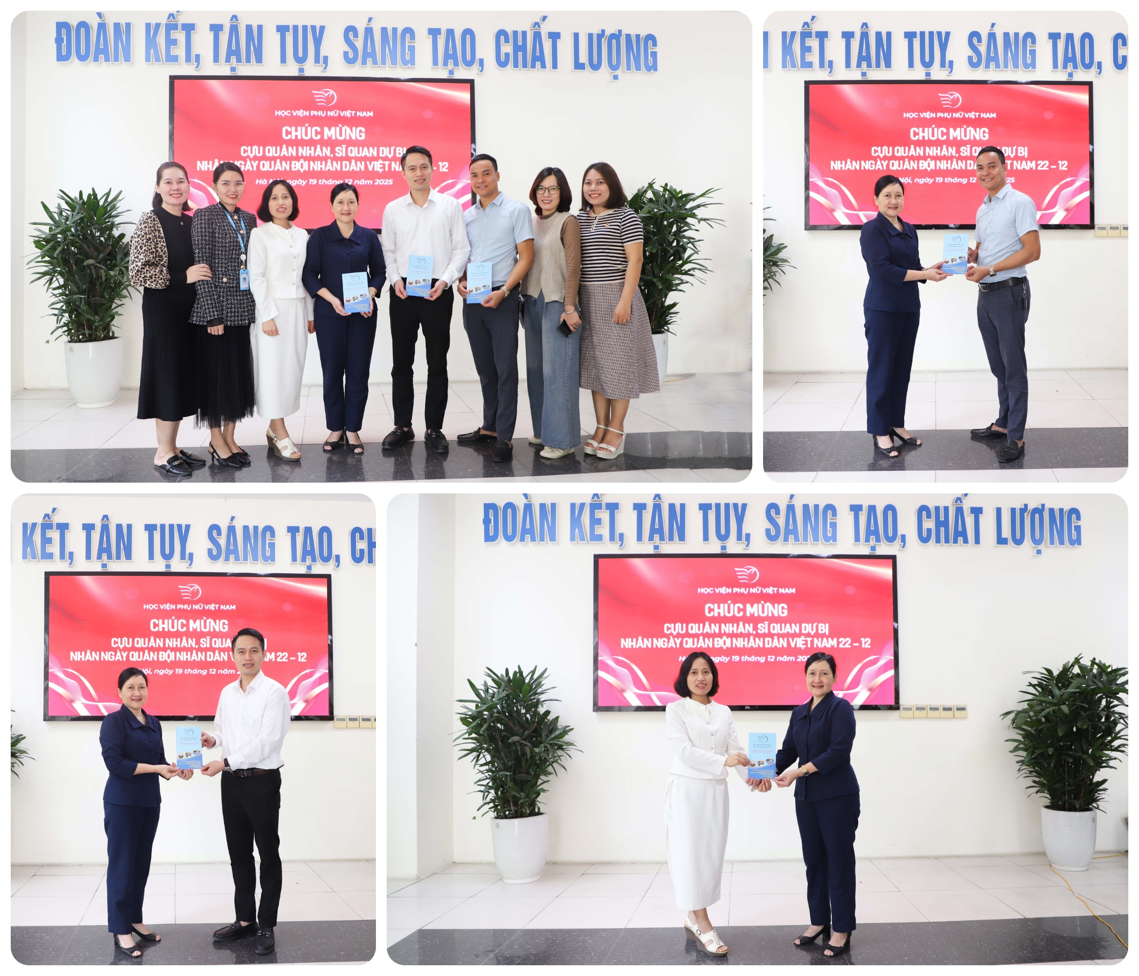 Trong không khí trang trọng, ThS. Hà Thị Thanh Vân thay mặt Ban Giám đốc Học viện đã trao tặng những phần quà ý nghĩa đến từng cựu quân nhân, sĩ quan dự bị. Mỗi phần quà không chỉ là lời chúc sức khỏe, hạnh phúc mà còn là sự ghi nhận những đóng góp quý báu của các đồng chí trong cả hai lĩnh vực: quân sự và giáo dục.