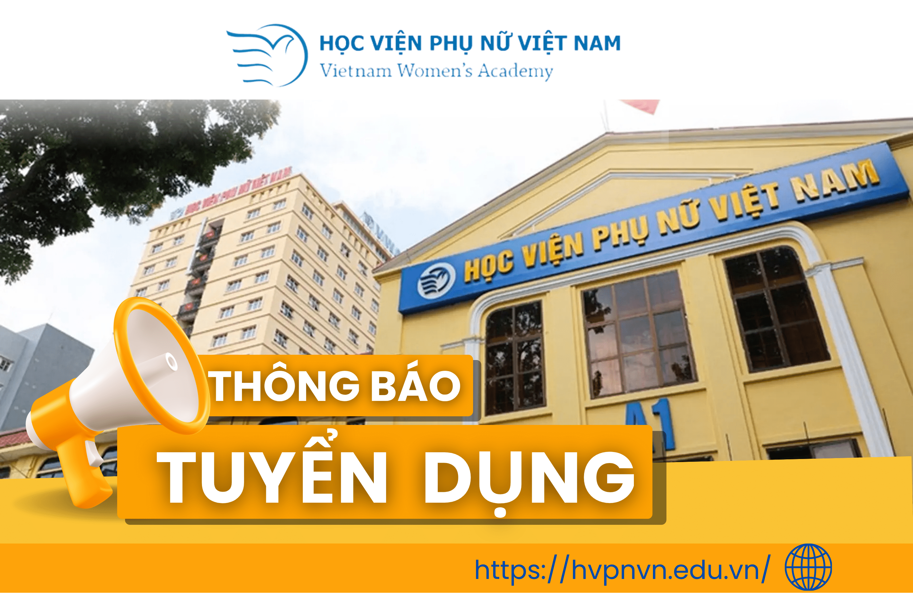 Học viện Phụ nữ Việt Nam thông báo tuyển dụng 21 nhân sự các vị trí: Giảng viên Kinh tế và Tài chính, Giảng viên Giới và Phát triển, Giảng viên Quản trị dịch vụ du lịch và lữ hành, Giảng viên Truyền thông đa phương tiện, Giảng viên Công nghệ thông tin, Giảng viên Luật quốc tế, Giảng viên luật Hành chính và Hình sự, Giảng viên Luật, Chuyên viên Kiểm tra nội bộ -pháp chế, Chuyên viên Tư vấn, thực hành khởi nghiệp và đổi mới sáng tạo, Trợ lý khoa Khoa học cơ bản, Chuyên viên Tài chính Kế toán, Thư viện viên, Nhân viên quản lý Khu nội trú, Chuyên viên quản trị cơ sở vật chất (kỹ thuật, điện nước, toà nhà), Chuyên viên Công tác sinh viên.