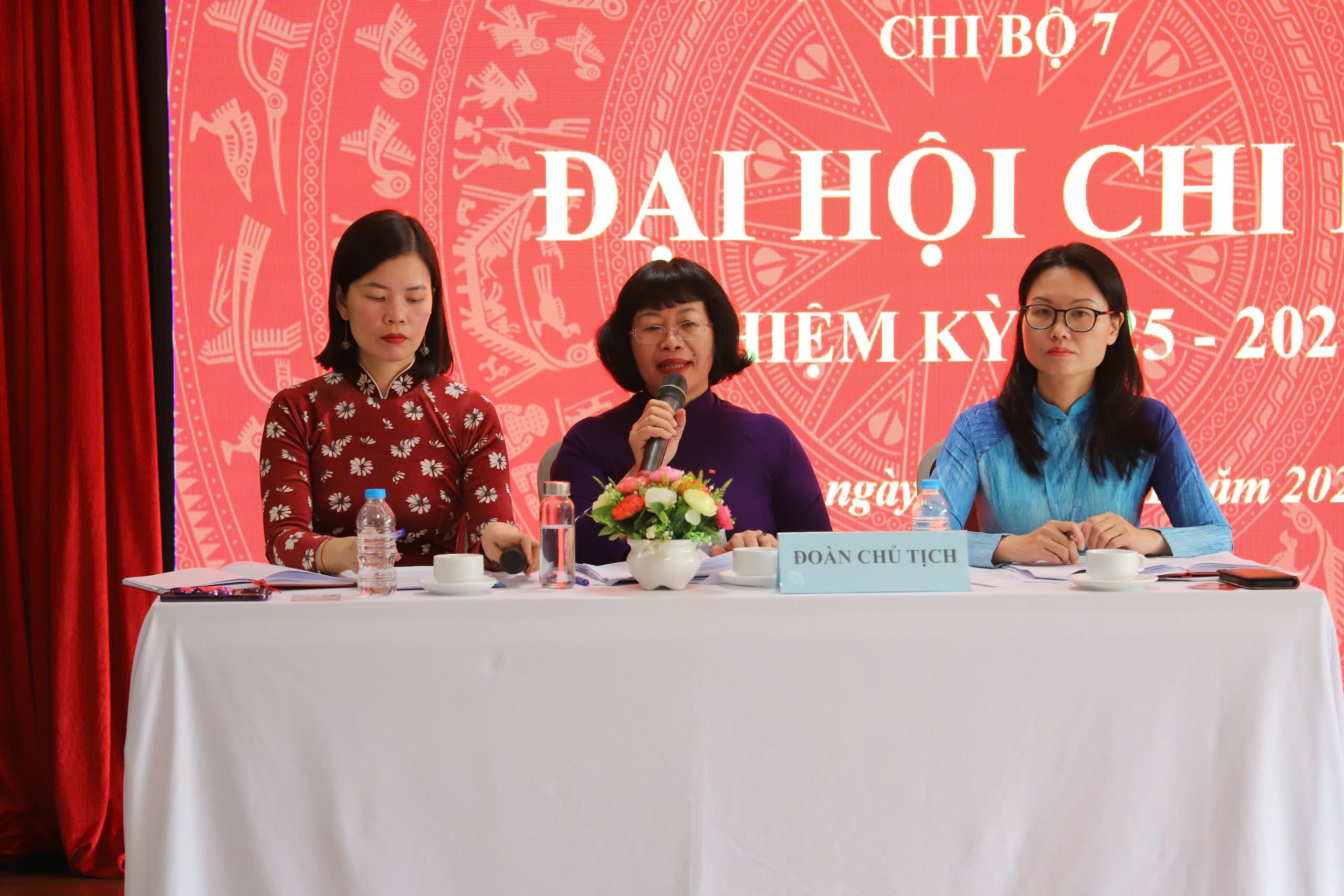 Phát biểu tại Đại hội, thay mặt Đảng ủy, đồng chí Nguyễn Hoàng Anh cũng đánh giá cao những thành tích mà Chi bộ 7 đã đạt được trong nhiệm kỳ qua. Đồng thời, Đảng ủy cũng giao nhiệm vụ cho Chi bộ 7 tiếp tục phát huy tinh thần tiên phong, sáng tạo, giữ vững đoàn kết nội bộ và góp phần quan trọng vào sự phát triển chung của Học viện Phụ nữ Việt Nam.