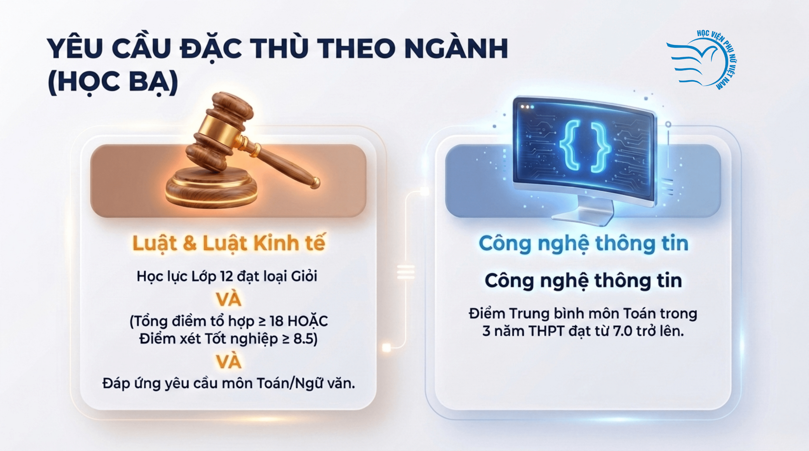 Tuy nhiên, việc mở rộng phương thức xét tuyển không đồng nghĩa với việc hạ thấp yêu cầu đầu vào. Với phương thức xét học bạ, Học viện vẫn đặt ra các điều kiện khá cụ thể để bảo đảm chất lượng. Thí sinh phải tốt nghiệp THPT năm 2026, có hạnh kiểm tốt, có điểm thi tốt nghiệp đạt từ 15 điểm trở lên với tổng 3 môn Toán, Văn và 1 môn thi tốt nghiệp hoặc tổ hợp xét tuyển và đạt mức điểm trung bình theo quy định của từng ngành.