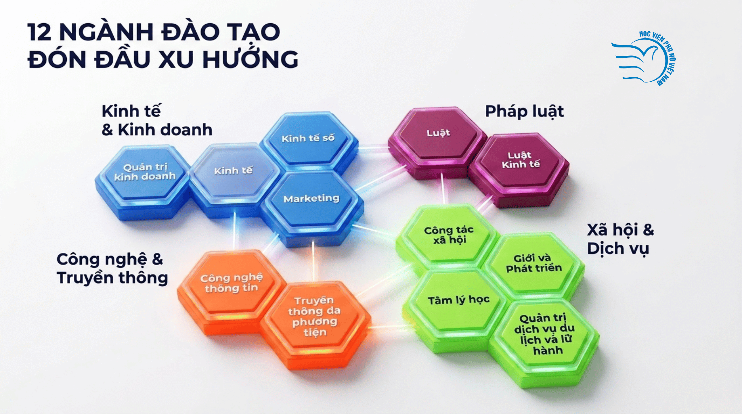 Song song với đó, các ngành như Công tác xã hội, Tâm lý học hay Giới và Phát triển vẫn giữ vai trò quan trọng trong đào tạo nguồn nhân lực phục vụ cộng đồng. Việc duy trì sự cân bằng giữa các lĩnh vực kinh tế, công nghệ và khoa học xã hội cũng được xem là một nét đặc trưng trong định hướng đào tạo của Học viện.