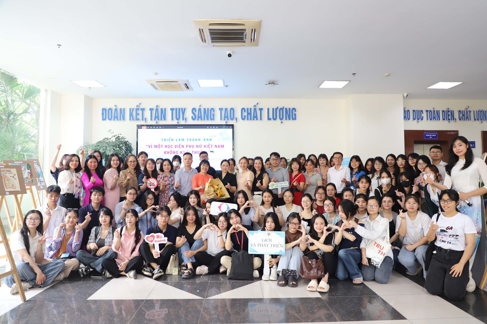 Điểm đặc biệt tại tọa đàm lần này không chỉ nằm ở tính chuyên môn, mà còn đến từ tinh thần chủ động, sáng tạo của sinh viên Học viện Phụ nữ Việt Nam. Họ không đứng ngoài các vấn đề xã hội mà đang từng bước thể hiện vai trò trung tâm trong các chiến dịch vì sức khỏe cộng đồng. Trong khuôn khổ chiến dịch “Vì một Học viện Phụ nữ Việt Nam không khói thuốc”, sinh viên đã cùng tham gia xây dựng fanpage, thực hiện các video truyền thông, tổ chức triển lãm tranh, viết bài tuyên truyền và chuẩn bị các tiết mục văn nghệ truyền cảm hứng.