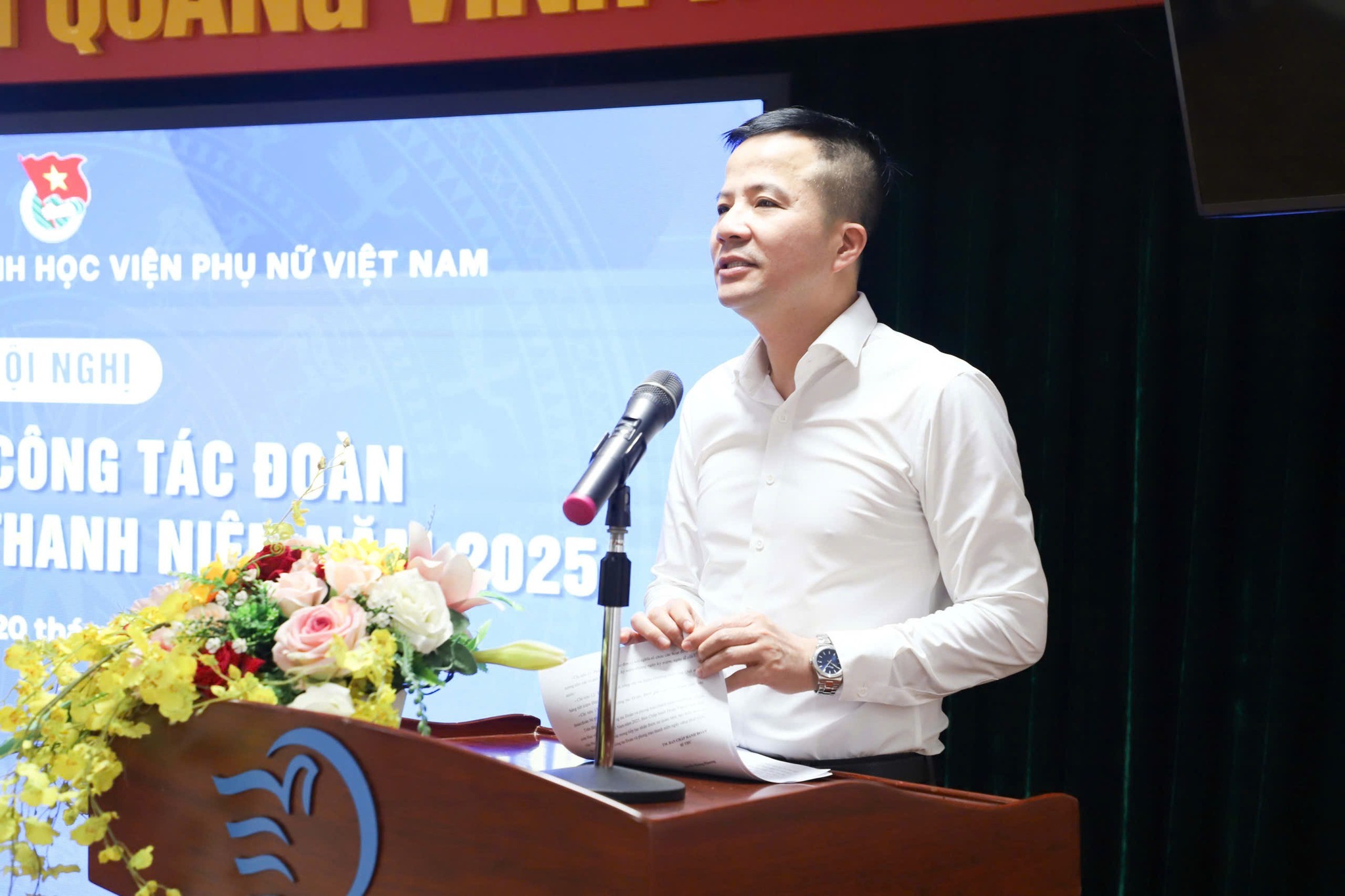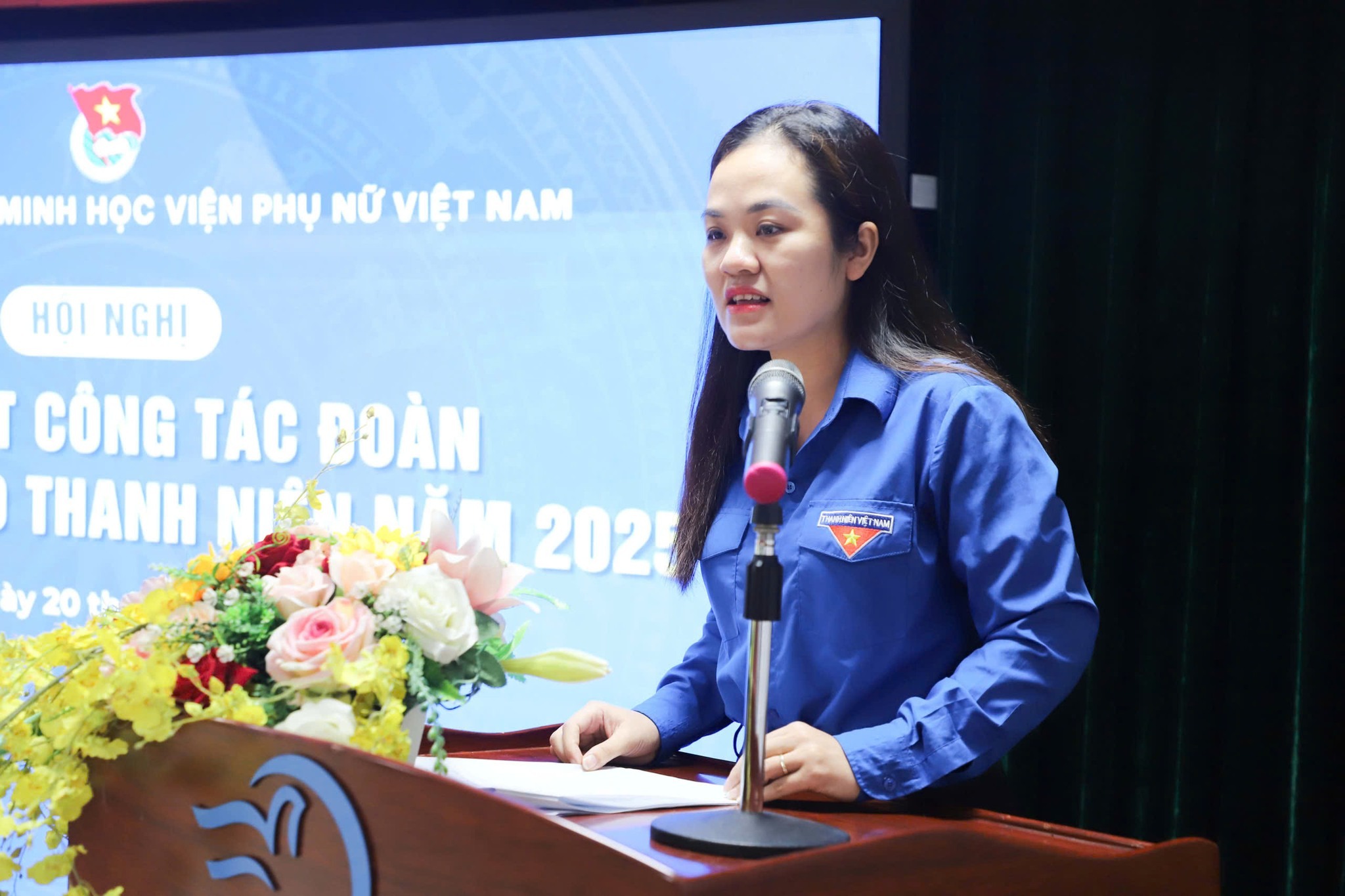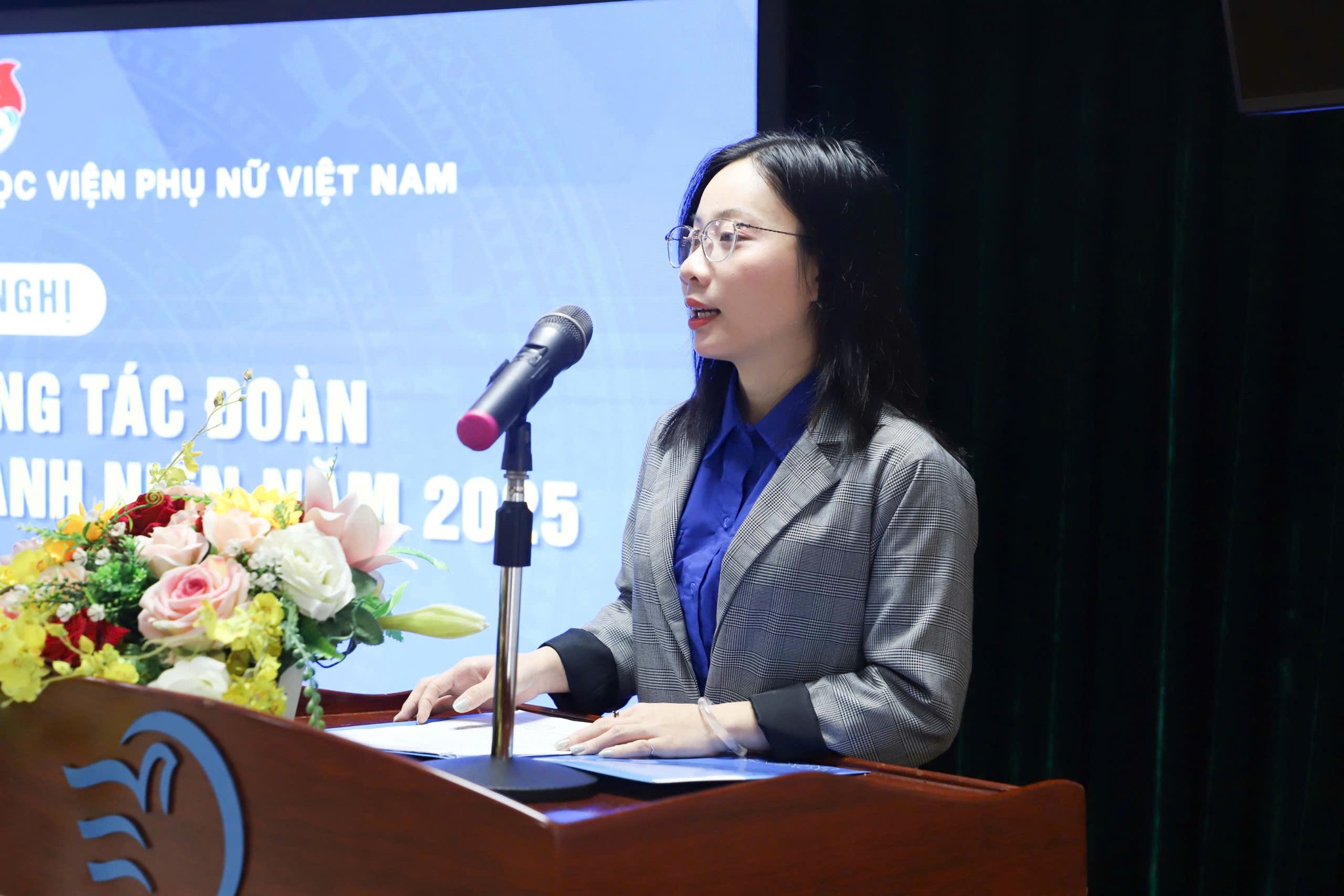 Để nhìn lại một năm hoạt động sôi nổi, toàn diện của Đoàn Thanh niên Học viện Phụ nữ Việt Nam, tại Hội nghị, đồng chí Nguyễn Hoàng Phương đã trình bày báo cáo tổng kết công tác Đoàn và phong trào thanh niên năm 2025, phương hướng nhiệm vụ năm 2026. Báo cáo khẳng định: Bám sát sự lãnh đạo của Đảng ủy Học viện và định hướng của Đoàn cấp trên, công tác Đoàn năm 2025 được triển khai đồng bộ, có trọng tâm, trọng điểm, gắn chặt với nhiệm vụ chính trị và hoạt động đào tạo của Học viện.