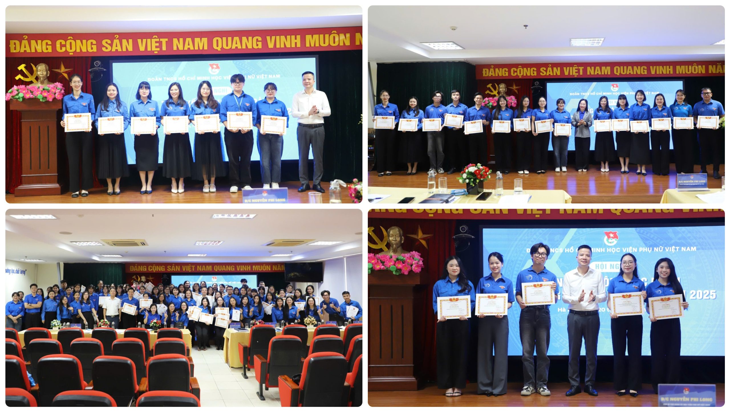 Trong khuôn khổ Hội nghị, Đoàn Thanh niên Học viện Phụ nữ Việt Nam đã tổ chức khen thưởng các tập thể, cá nhân có thành tích xuất sắc trong công tác Đoàn và phong trào thanh niên năm 2025. Nhiều tập thể, cá nhân được nhận giấy khen của Đoàn Thanh niên Trung ương Hội LHPN Việt Nam và Đoàn Thanh niên Học viện; 6 sinh viên tiêu biểu được vinh danh danh hiệu “Sinh viên 5 tốt” cấp Học viện; hàng trăm tập thể, cá nhân được khen thưởng trong các chuyên đề văn hóa – thể thao, phong trào thanh niên tình nguyện và Chiến dịch Mùa hè xanh 2025.