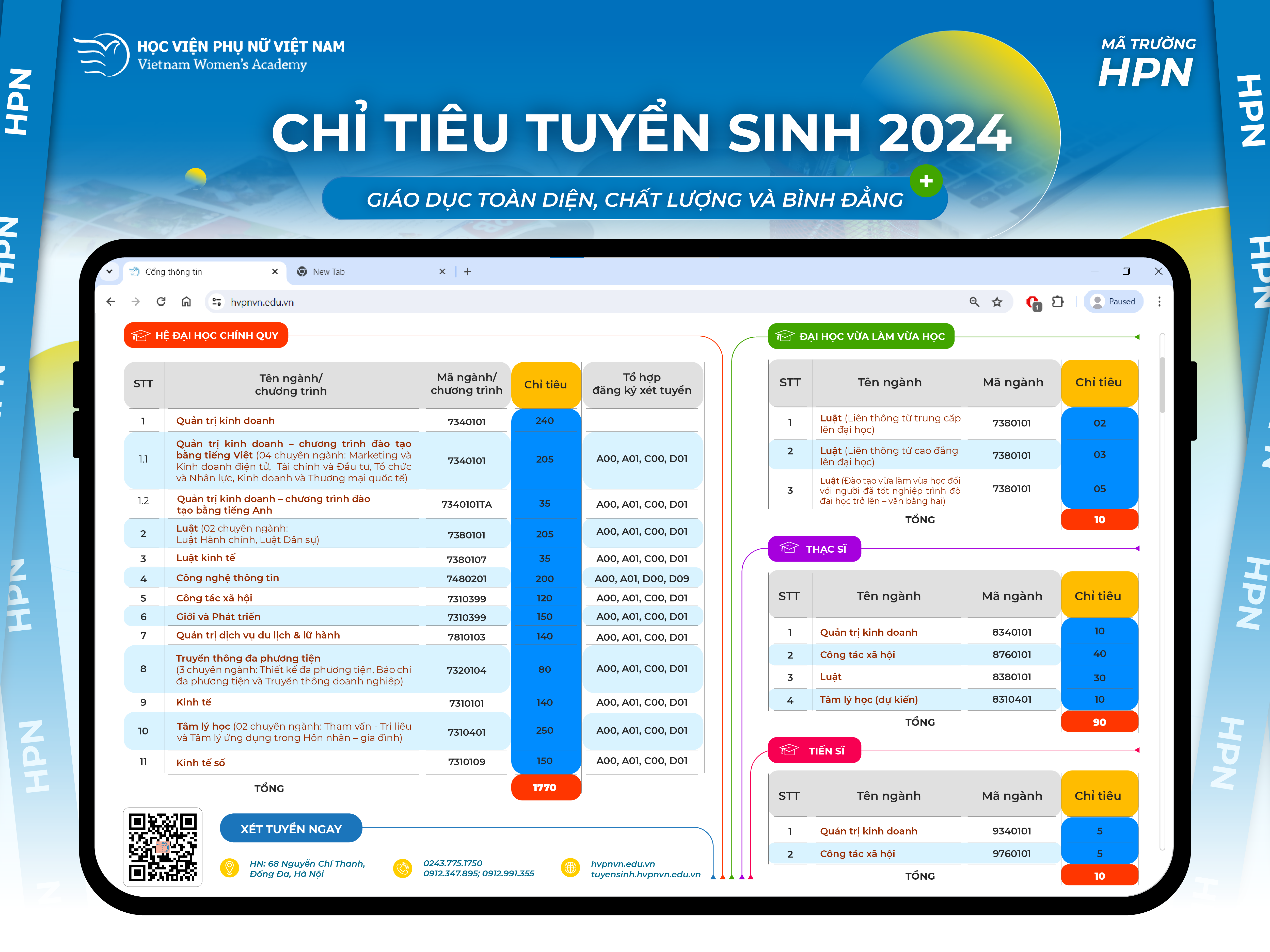 – Website: http://hvpnvn.edu.vn/, https://tuyensinh.hvpnvn.edu.vn/.
